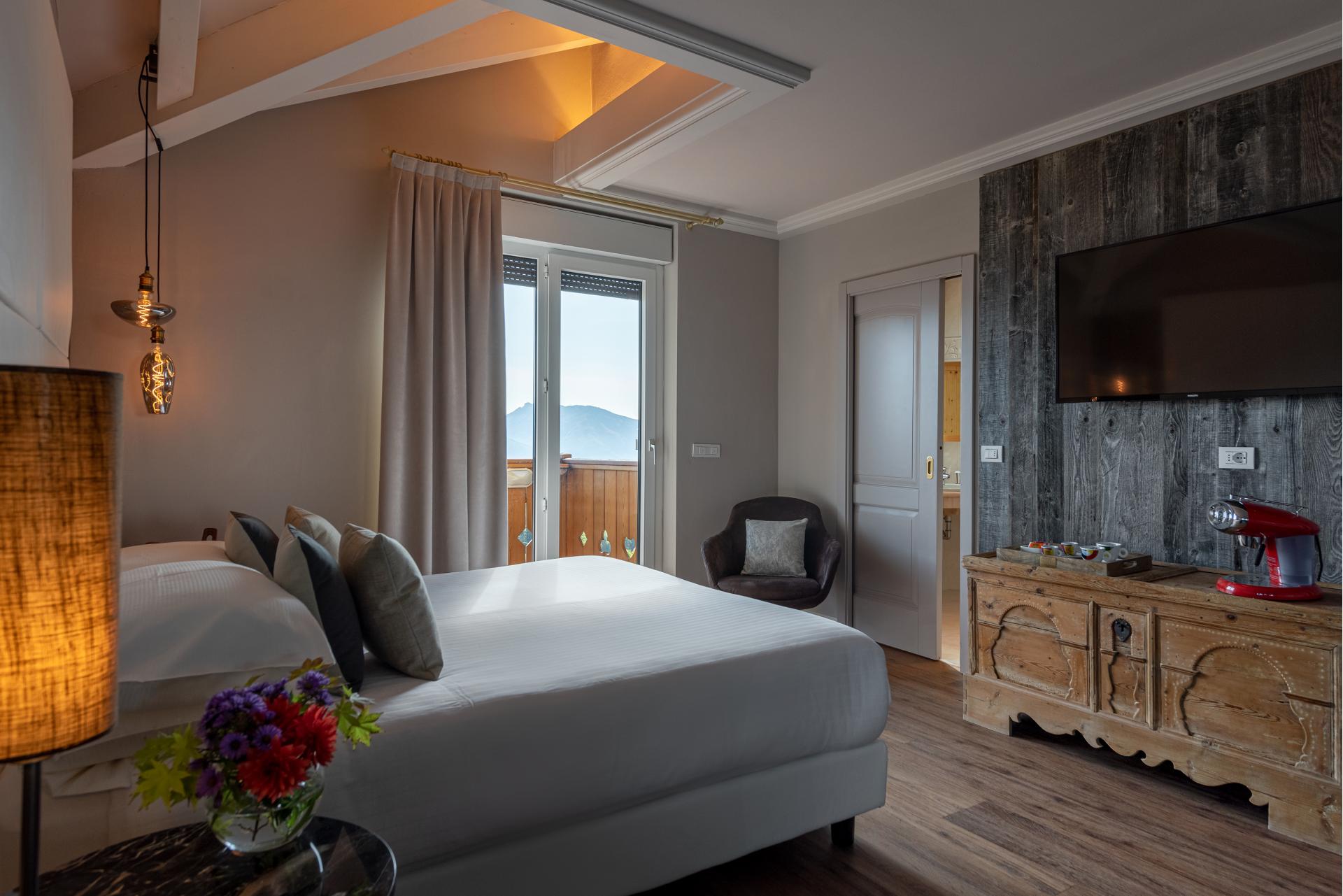 Ideale per chi ama lo spazio più ampio, perfetta per accogliere un bambino o un adulto in più. E’ la camera giusta per chi al risveglio ama contemplare i nostri panorami davvero unici.